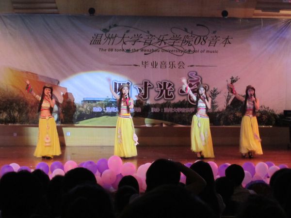 整场音乐会分为追忆、青春、感恩、启航四大篇章,每个篇章由四个不同类型的节目组成,贯穿了大学四年的美好时光。音乐会以08音本全体同学的合唱《同桌的你》和《与君同在》拉开序幕。由舞蹈和合唱组合形式的《同桌的你》让人眼前一亮,而《与君同在》又让人勾勒出一幅大学四年的情景再现。一曲《起点》既唱出了音乐会的开始,也唱出了大家即将走出校园的另一个全新的开始。钢琴四手联弹、独唱《浏阳河》、独舞《女儿嫁》、小提琴协奏曲《卡法蒂娜》、小组唱《老师,我想你》、民乐合奏《春江花月夜》、钢琴独奏《告别》等节目,无不显示出08音本班精湛的专业水平和丰富的舞台经验。曾获校歌舞组合大赛二等奖的《千金》得到了台下阵阵热烈的掌声,《次仁拉索》更是掌声不断、欢呼不断。小品《拒绝逃课》诙谐风趣、笑点不断,为大家展示了08音本除专业以外的才能。不得不提的是原创歌曲《不想说再见》,此情此景,把他们不想说再见的心声表达地淋漓尽致,同时也显现了同学自己作词作曲的潜质。群舞《Dreamhigh》作为结束舞,把气氛推向最高潮。它结束了四年的大学时光,也开始了大家全新的生活。08音本的同学没有悲伤、没有哭泣,因为他们的心紧紧地连在一起,让大家永远铭记这份美好的回忆,永远感恩老师与同学……