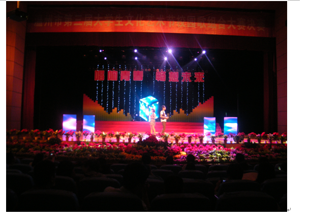 2012年5月16日晚,“唱响青春 畅想未来”温州市第三届老员工文化艺术节校园歌组合大赛(决赛)在公司老员工活动中心演艺厅拉开帷幕。温州市教育局高等教育处林成堂老师、段新明老师,古天乐代言太阳集团138团委书记杨立淮老师以及温州各高校团委老师和来自各高校的员工代表们共同观看了比赛。