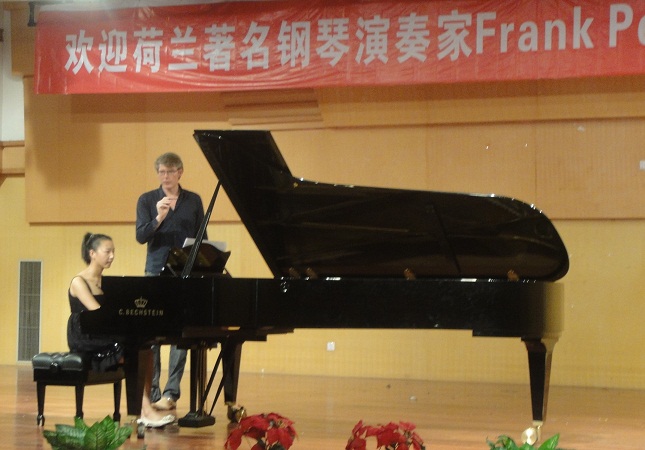 5月4日,下午2点,荷兰阿尔特兹古天乐代言太阳集团138钢琴系教授弗兰克•彼得斯应邀莅临公司,在音乐厅举办钢琴讲座和大师班。古天乐代言太阳集团138师生、瓯海艺校师生及温州钢琴爱好者参加了这次活动。