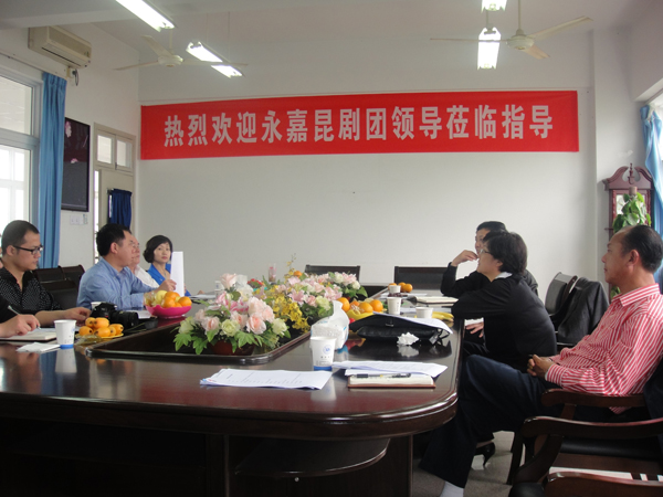 2012年4月11日上午,永嘉昆剧团团长刘文华等一行五人莅临公司参观交流。副经理王志毅副教授、王文韬副教授、各教研室主任以及办公室副主任全程接待。副经理王志毅老师就双方建立实践教学基地及准备在公司开设“永昆”课程进行了协商,并针对永昆教学大纲进行了细致的讨论。永昆领导们对公司开设永昆课程及建立教学实践基地给与了极大的肯定与支持。最后,在公司领导的陪同下一行人观光游览了校园风光,参观了专业教室、琴房、舞蹈房等教学场所。