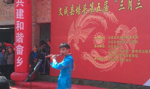 2012年3月22日,王文韬、王志毅副经理一行六人,受邀前往文成县黄坦镇培头民族村,参加“文成县培头第五届‘三月三’畲乡风情节”。期间,刘玉亭、易雄志两位老师的歌声及11级音本班陈立烜的笛声,迎来了村民及四方客人的阵阵掌声。