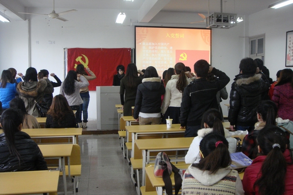 公司预备党员宣誓仪式于3月14日下午两点在外语楼406正式举行。27位预备党员出席仪式。员工科副科长叶如芳老师主持。