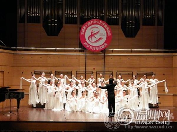 据了解,该团队在叶文辉老师的指挥下,以《樱花》、《工尺谱游戏》两首作品的精湛演绎,从最后入围的47个声乐参赛节目中脱颖而出。这是温大继上届获得艺术表演类声乐甲组(非专业组)一等奖之后,实现了在本届大艺展上获得声乐乙组(专业组)一等奖的突破。该团队继2010年获得第六届世界合唱节锦标赛金奖荣誉后,再获国家级竞赛最高奖。