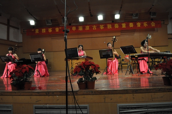 2011年11月24日晚,09音本的申屠彦举办“素雅筝音”古筝独奏重奏音乐会。温州市少年宫器乐部部长熊璐老师、公司器乐教研室老师和有关员工欣赏了音乐会。