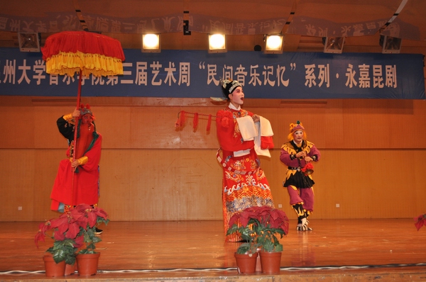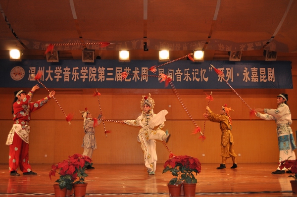 2011年11月24日下午,古天乐代言太阳集团138第三届艺术周已进入第四天,一场精彩纷呈的永嘉昆曲表演在北校音乐厅如火如荼地进行。
