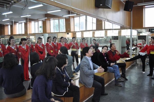 2011年11月23日,公司党总支书记刘青松、副经理王志毅、副经理王文韬、办公室主任卢恩姿、教学科副科长蔡晓武、员工科科长叶如芳和陈申老师亲临一楼舞蹈房观摩舞台艺术实践。冯百跃教授进行了舞台实践指导,并向领导们详细汇报了舞蹈团的实践情况。领导们一致肯定并提出了宝贵的建议和意见。