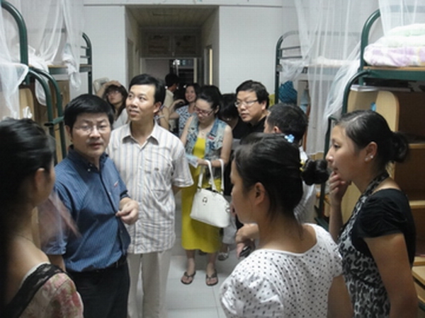 老同学积极主动帮助新生搬运行李,引导新生办理手续,带领他们入住新寝室。新生报到当晚,公司党总支书记刘青松、常务副经理李杰鹏、副经理王文韬和王志毅在辅导员的陪同下走访了新生寝室,详细了解新生的报到、住宿情况,并与新生及其家长们进行了亲切的交谈,耐心解答新生的各种疑问。夏日的炎热尚未退去,但是领导们依然冒着酷暑送去问候,这让每位新生倍感亲切。