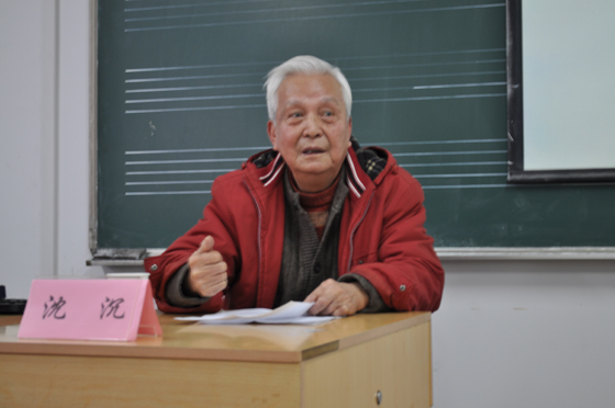 在李杰鹏经理、陈克秀教授的陪同下,沈沉先生准时来到讲座现场。接下来的讲座中,沈沉先生从“音韵学”的角度来谈语言与音乐的关系,分别从语言的音乐属性、语言的声调规律以及倚声度曲三大方面,阐释了“音乐是人类灵魂的震荡波”这一定义,讲座过程中,先生亲身示范,其惟妙惟肖、栩栩如生的表演感染着在座的师生,讲座现场时时发出热烈的掌声。讲座的最后,沈沉先生又给研究生同学提了一些建议:音乐是感性艺术,学音乐切勿“天桥把戏光说不练”,建议公司与班级多举办一些实践活动。先生十分愿意与有志于从事温州音乐、戏曲研究的同学切磋交流,也会尽其所能为有志者提供资源。在座的研究生同学在感慨沈沉先生鹤发童颜,精神矍铄的同时,纷纷表示十分敬佩先生深厚的文化功底和活到老学到老的精神。