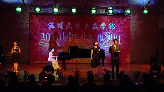 6月3日晚,2010届毕业生汇报演出在北校音乐厅隆重举行。公司党总支书记刘青松、常务副经理李杰鹏、副经理王文韬及全院老师和员工观看了演出。