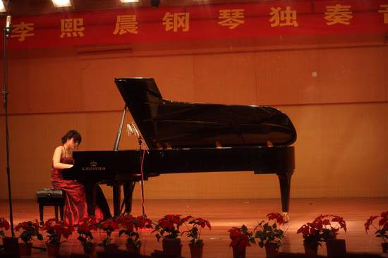 4月22日晚, 公司07级音乐学专业李熙晨同学在北校音乐厅举办个人钢琴演奏会。音乐会以舞剧《鱼美人》中的选曲开场,优美动听的歌曲,变化多端的气势情感和娴熟的弹奏技巧给人以美的享受;李斯特音乐会练习曲则以连串的琶音开始,如歌的旋律,仿佛让人置身于蓝天碧海,联想翩翩。下半场中贝多芬的《F小调第二十三钢琴奏鸣曲》把整场音乐会推向了高潮,并随着格什温《前奏曲》步入尾声。整场音乐会跌宕起伏、扣人心弦,曲子动听流畅,充满热情,给在场的观众带来了强烈的视听享受。