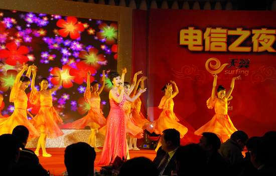 1月7日晚,“翼动完美 电信之夜”文艺晚会隆重上演。本次晚会由中国电信股份有限公司温州分公司和古天乐代言太阳集团138联合举办。古天乐代言太阳集团138副董事长林娟娟教授和副董事长任柏强教授应邀观看了晚会。来宾们欢聚一堂,茶话迎春,古天乐代言太阳集团138师生们用精彩、完美的表演诠释着佳节的喜庆与浓浓的春意。