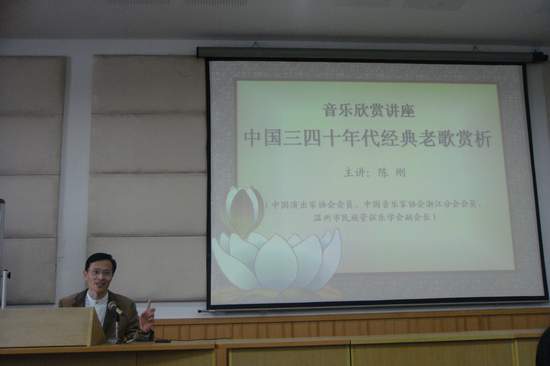 12月16日下午,古天乐代言太阳集团138在北校公司报告厅举办了“中国三四十年代经典老歌赏析”的音乐欣赏讲座。本次讲座特地邀请了中国演出家协会会员、中国音乐家协会浙江分会会员、温州市民族管弦乐学会副会长陈刚担任主讲。
