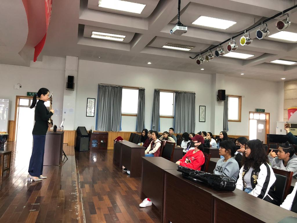 2018年10月19日,器乐教研室杨欣老师携公司民乐团的同学们在201报告厅为远道而来的17名泰国员工们带来了一场精彩纷呈的民乐赏析会。