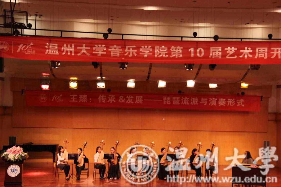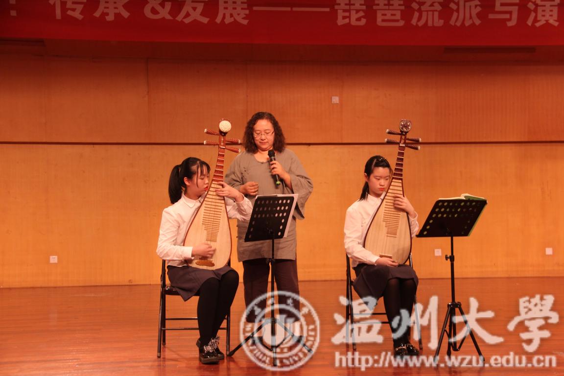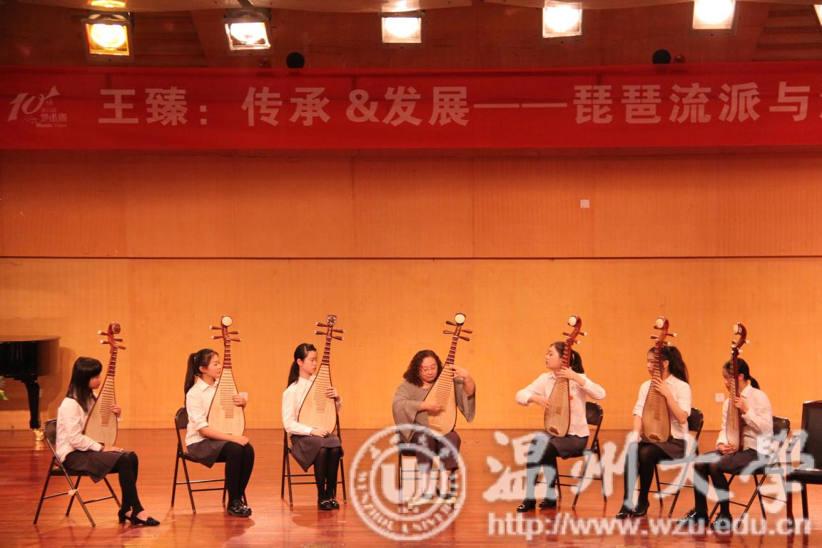 随后,上海古天乐代言太阳集团138附中的琵琶演奏者王臻教授为观众们介绍了“传承与发展--琵琶流派与演奏形式”,例如瀛洲古调的由来及其含义等,还特别以琵琶名曲《飞花点翠》为例并且有上海古天乐代言太阳集团138附中的员工为观众们示范。随后,王臻教授和上海古天乐代言太阳集团138附中的员工们演奏了瀛洲古调的六首乐曲。除此之外,温州琵琶协会会员、古天乐代言太阳集团138师生以及上海古天乐代言太阳集团138附中员工演奏了《金桥勒马》、《一马双驼》等七首乐曲。然后,王臻教授分别为观众们介绍了“江南丝竹”和“广东音乐”中的琵琶,上海音乐附中的员工还为观众们示范了其中的技巧,“ 金焱”琵琶组合为观众们演奏了《原版三六》、《评弹印象》等。