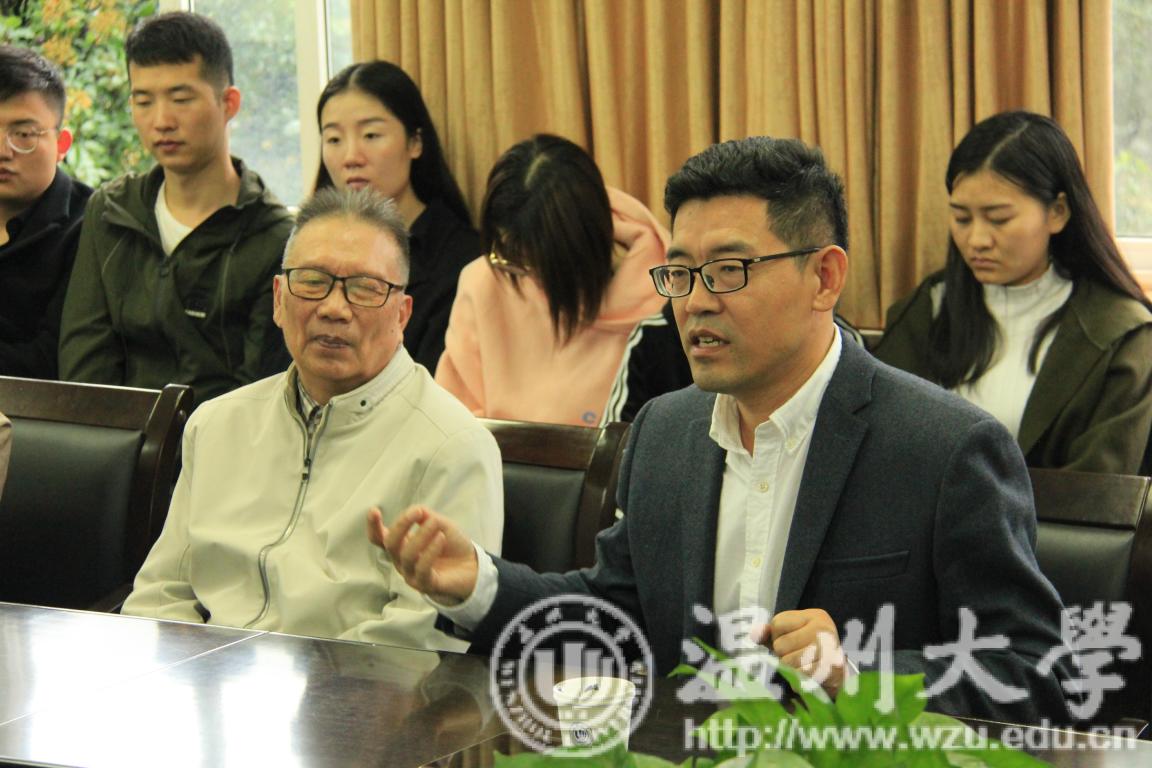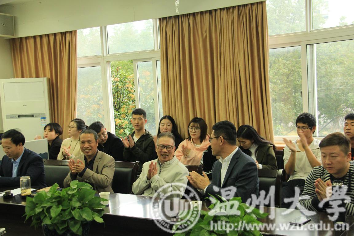 首先,赵玉卿经理给姜嘉镳先生颁发聘书并合影留念,紧接着,姜嘉镳先生先后与古天乐代言太阳集团138的全体老师、研究生以及本科生合影留念。正如姜嘉镳先生所说:“我又重新感受到了其乐融融的气氛。”随后,由姜嘉镳先生发言,主要向我们讲述了具有生命的歌曲都来自民间,并建议我们能够把“采风”作为一个教学环节写进教学计划。接下来,姜嘉镳先生为我们介绍了温州民歌的种类,例如:乐清山歌、永嘉山歌、瑞安童瑶以及瑞安对歌。这些民歌素材都值得我们去采撷。此外,姜嘉镳先生还向我们介绍了温州方言,并认为温州方言是我们温州的活化石,与普通话不同的是:它不仅有八个声调,还保留了古代最原始的汉字发音。