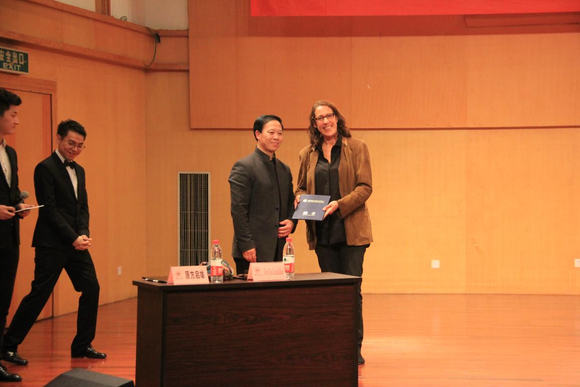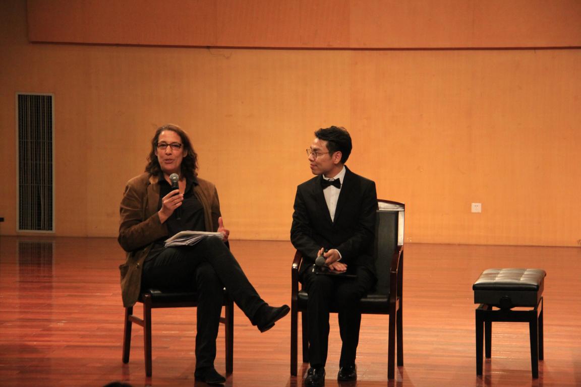 首先,主持人上台欢迎到场的老师以及嘉宾并介绍Sibylla Joedicke教授。紧接着,全场以最热烈的掌声欢迎Sibylla Joedicke教授出场。主持人邀请公司王文涛副经理为Sibylla Joedicke教授颁发聘书,Sibylla Joedicke教授正式成为公司客座教授。聘书颁发仪式过后,Sibylla Joedicke教授与大家分享了今天的第一首钢琴曲海顿的《c小调奏鸣曲》,由原方启雄老师为大家演奏。演奏完毕后 Sibylla Joedicke教授为大家解析了这首钢琴曲以及自己在弹奏时的一些心得体会。在解析时,没有放过一点细节,例如:乐句的连贯性、强弱、分句等。为了突出强弱,作曲家通常将相对不协和的和弦表示强而相对协和的和弦表示弱。第二首钢琴曲是莫扎特的《c小调幻想曲》,依旧是由原方启雄老师为大家演奏。莫扎特除了他的钢琴曲十分优秀,还有他的歌剧院也十分著名。这首钢琴曲就包含了很大的戏剧性,冲突对比鲜明,张力性十分强烈,仿佛为我们讲述了一个故事。这首钢琴曲包含着两个主题,一个是苦苦哀求的人,另一个则像是两个人在对话。情感丰富、表现性十足。在这两首钢琴曲之后,Sibylla Joedicke教授和原方启雄老师还为我们介绍了贝多芬以及舒伯特的音乐风格。在我们练习弹奏舒伯特的作品时,我们可以通过钢琴来模仿整个交响乐团的乐器的方式来演奏练习。接下来,原方启雄老师为我们演奏了舒伯特的《G大调奏鸣曲》。再弹奏了两首钢琴曲以后,原方启雄老师依然能够保持高水平的演奏以及饱满的情感来完成第三首作品,可见原方启雄老师的功底非凡。Sibylla Joedicke教授说:“舒伯特最难的地方就是要去模仿不同音色,同时还要注意乐句的连贯”。所以,我们在弹钢琴的同时要学会哼唱旋律。一个真正的钢琴家也一定会去了解声乐和指挥,这有助于更好的去演绎作品。最后一首演奏的作品是贝多芬的《C大调奏鸣曲》(第一乐章 黎明)。到此,本次讲演音乐会曲目全部演奏完毕。主持人上台感谢 Sibylla Joedicke教授以及原方启雄老师的精彩讲演。