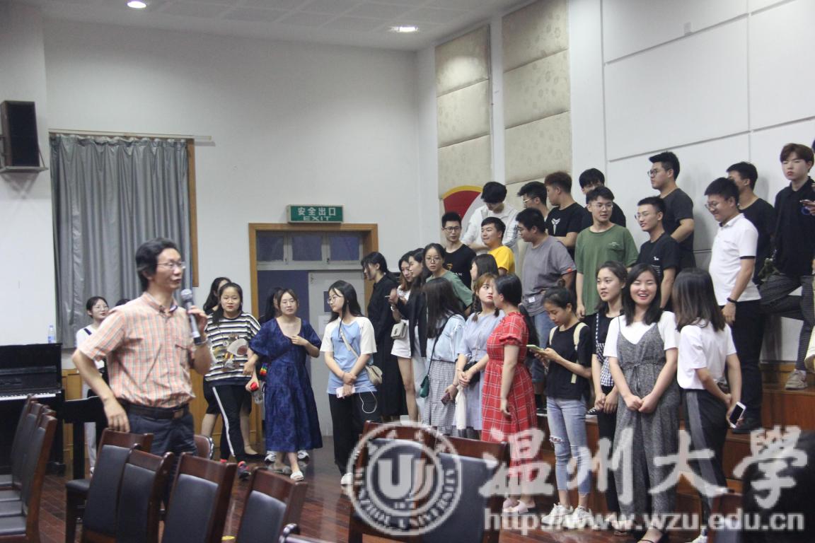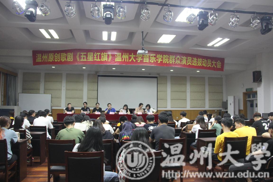 首先,公司党委副书记蔡晓武老师发言,蔡书记为大家简单介绍了温州原创歌剧《五星红旗》的创作背景、意义,以及《五星红旗》背后的真实故事。歌剧《五星红旗》是一部爱国歌剧,为了能够使歌剧更加精彩完美的演绎,《五星红旗》歌剧的创作融合了一批优秀的词曲作者,创作的阵容十分强大。可以说这部原创歌剧融合了许许多多的心血,意义非凡。接着,公司副经理蔡军老师发言,蔡经理为大家介绍了"群众演员"的意义以及给予的一些奖励,以此来鼓励大家踊跃报名、尝试参与歌剧的演出。显然,许多同学们已经显得跃跃欲试了。随后,叶文辉老师对接下来的选拔和排练安排做了讲解,同时再一次强调了本次选拔的意义,同时也为我们能够有如此好的机遇而感到高兴。歌剧,可以说是声乐艺术学习的最高殿堂,是每个人都无比向往的神圣殿堂,能够亲眼见证,甚至亲身参演原创歌剧《五星红旗》的诞生以及发展,这对我们来说是十分幸运的。动员大会的最后,是公司党委书记朱启鑫老师总结讲话,朱书记表示,原创歌剧《五星红旗》,是检验温州市文化底蕴的一战,同时也是检验公司整体水平的一战,希望全院师生能够齐心协力,打好漂亮一战!发言完毕后,同学们便开始了紧张的选拔。