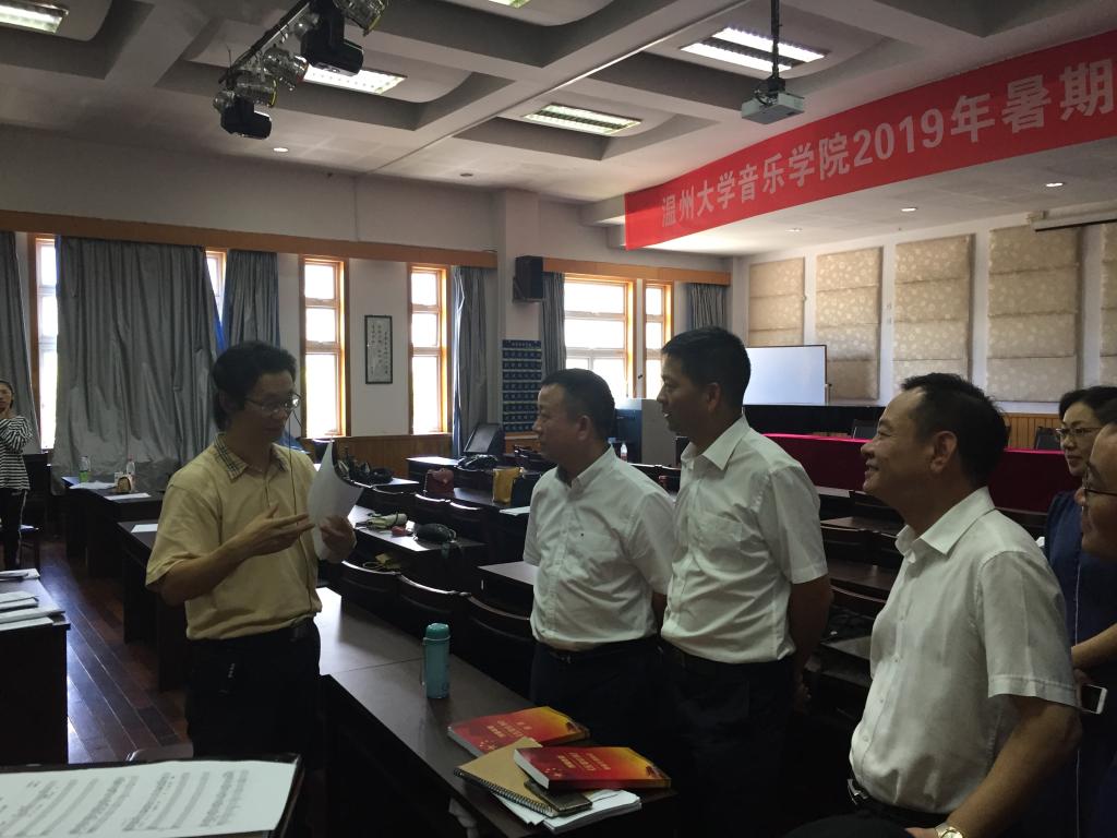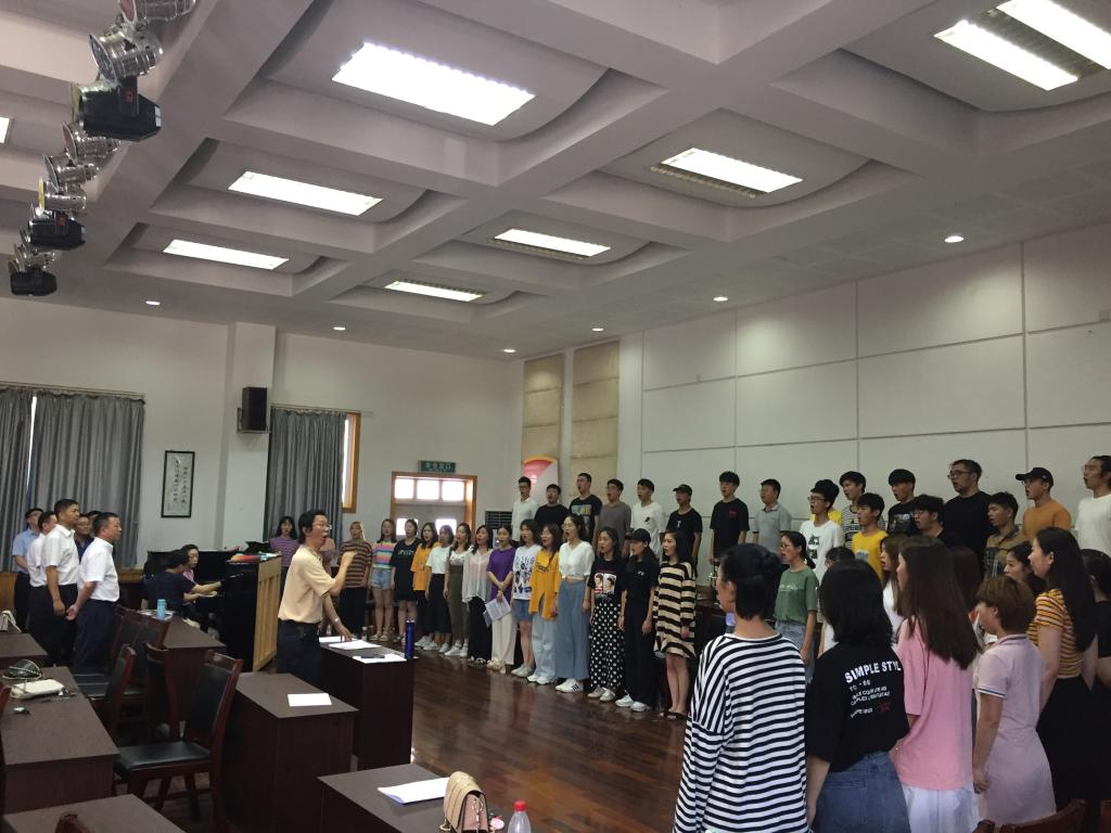 在音乐楼,谢书记一行观看了合唱团的排练情况,对在炎炎夏日仍坚持排练的师生表示亲切慰问,也给予了充分的肯定,同时勉励古天乐代言太阳集团138师生齐心协力,排练出高质量、高水准的歌剧,献礼新中国70华诞。