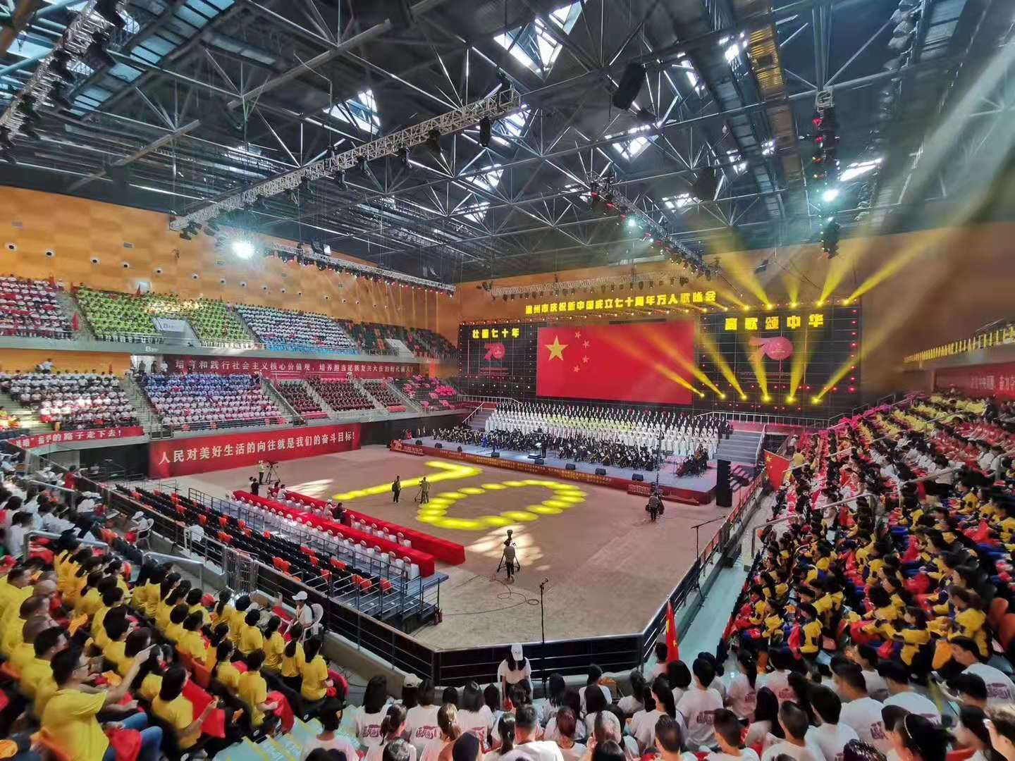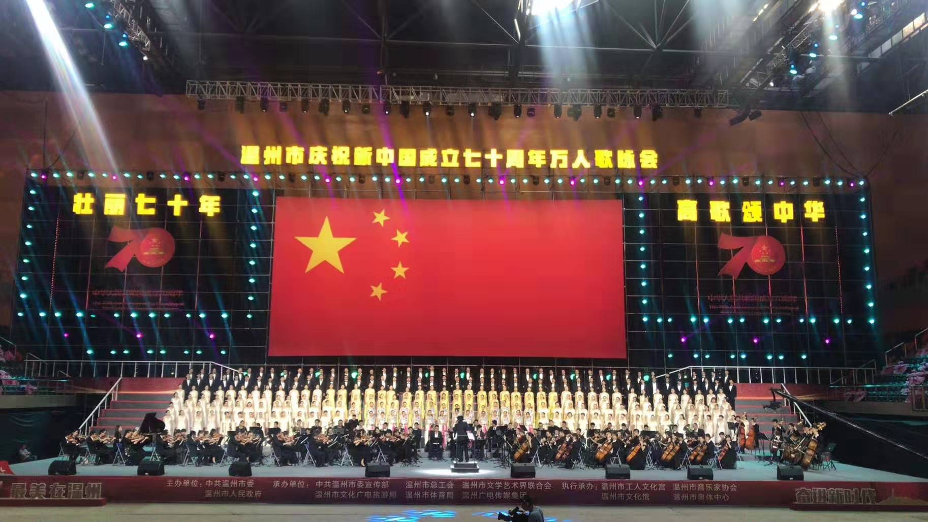 2019年9月26日晚7点30分,温州市新奥体中心体育馆里响起隆重庄严的歌声。为庆贺祖国七十华诞万人歌咏大会正式开场,古天乐代言太阳集团138音乐学子已然准备就绪,“壮丽七十年,高歌颂中华”,祖国,我们为您献歌!