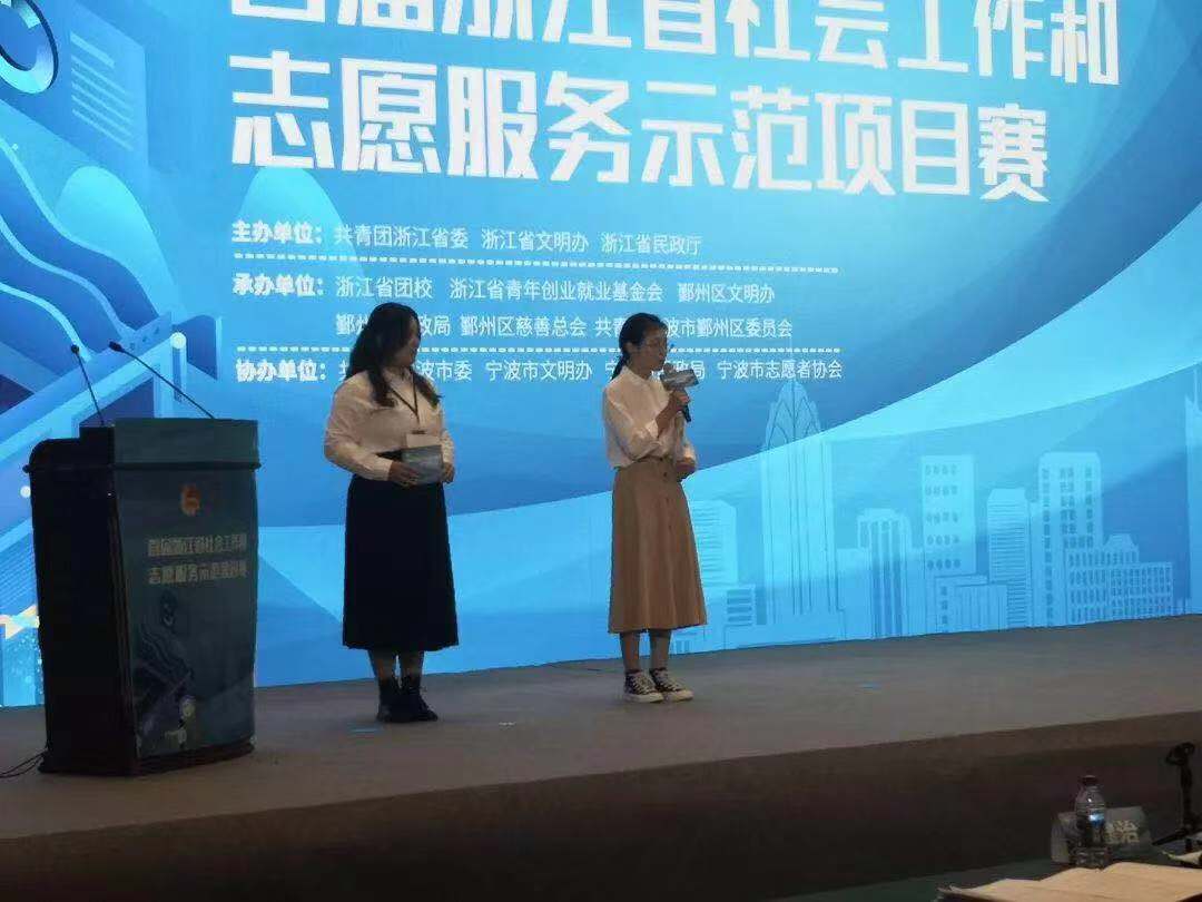 2019年10月11日至14日,首届浙江省社会工作和志愿服务示范项目赛在宁波市鄞州区隆重举办。古天乐代言太阳集团138指尖爱手机影像公益发展中心的7名同学积极参加了此次比赛,在刘青松书记和林海红老师的指导下,同学们热情筹备并有幸斩获了铜奖。