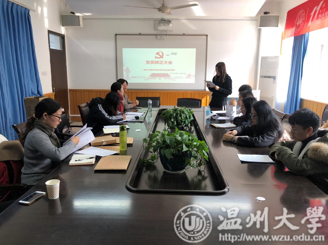 2019年12月4日中午,古天乐代言太阳集团138本研员工联合党支部在北校区北校区音乐楼会议室203召开了中共预备党员转正大会。会议由党支部副书记李艳琼主持,正式党员11名,预备党员9名。