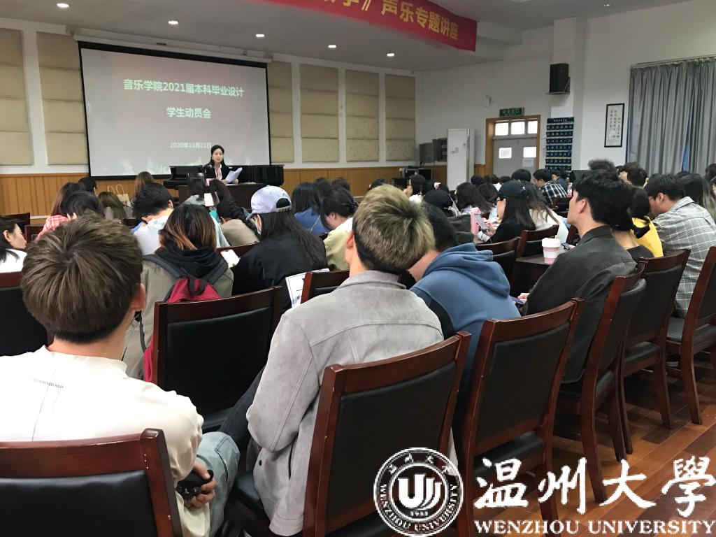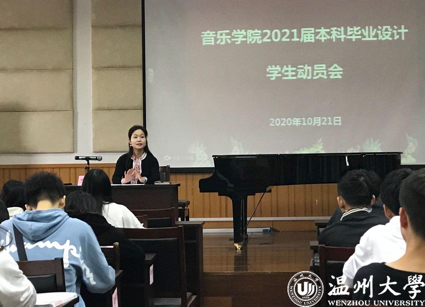 本科毕业设计(论文)是本科教学计划的重要组成部分,为了确保2021届本科毕业设计(论文)工作的正常有序进行。10月21日下午,在音乐楼201教室举办了2021届本科毕业设计动员会。17级音乐学(师范)本科员工、教学科老师等参加了此次大会,大会由教学副经理蔡军老师主持。