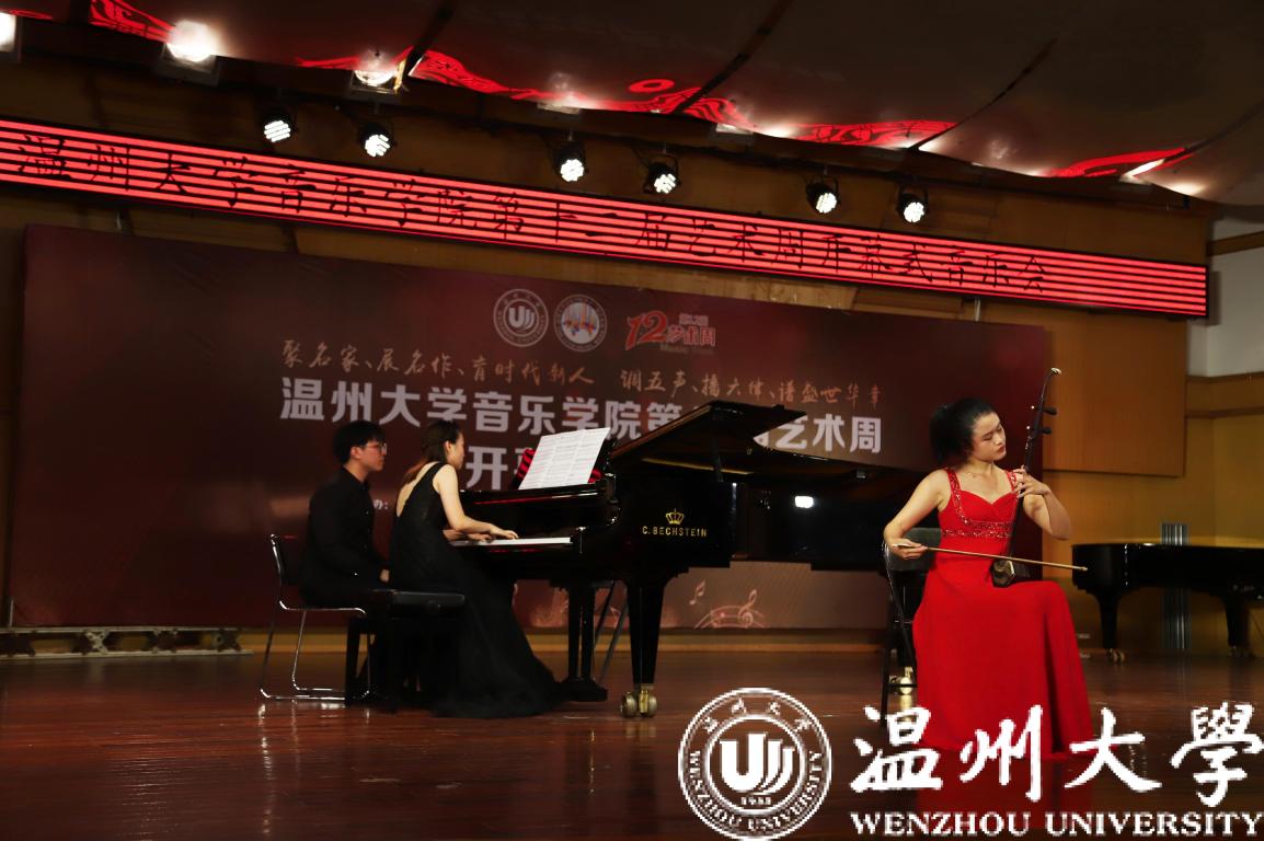 杨欣老师二胡独奏,陈露雯老师钢琴伴奏的《三门峡畅想曲》,钢琴与二胡的激烈碰撞展示了三门峡雄伟壮观的气势,主题音乐热烈,情绪激昂,节奏鲜明,犹如滚滚洪流一往无前,热情讴歌了社会主义建设的巨大成就,赞颂了劳动者们的崇高精神和英雄气概,抒发了人民对伟大祖国无比热爱的深情厚谊。