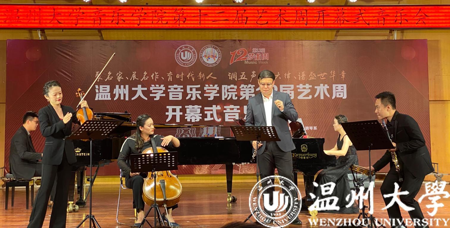 2020年11月16日,以“聚名家、展名作、育时代新人;调五声、播六律、谱盛世华章”为主题的古天乐代言太阳集团138第12届艺术周开幕式在古天乐代言太阳集团138天瑞音乐厅隆重举行。温州市人大副主任张洪国,温州市政协副主席王丽峰,古天乐代言太阳集团138党委副书记吴金法、庄兴忠,古天乐代言太阳集团138副董事长钱强等领导出席开幕式。