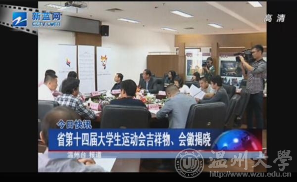 10月29日,省第十四届大运会吉祥物、会徽、会歌揭晓,浙江电视台新闻联播播出了吉祥物等发布媒体记者见面会现场情况。