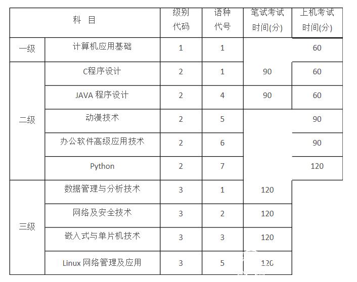 (六)三级,实行笔试,时间为120分钟。共有数据管理与分析技术、网络及安全技术、嵌入式与单片机技术、Linux网络管理及应用四个考种。