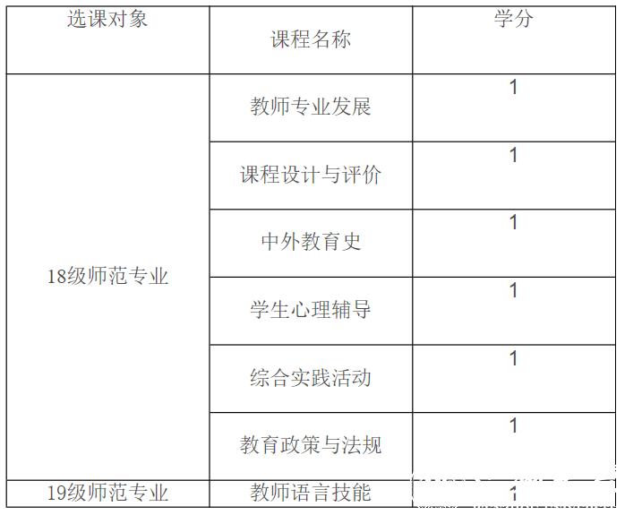 根据古天乐代言太阳集团138师范类专业本科人才培养方案,要求18级员工对教师教育类公共选修课必须修满6学分,19级员工对教师教育类公共选修课必须修满3学分。根据培养方案课程设置,2020-2021-1学期开设的教师教育类公共选修课如下附表: