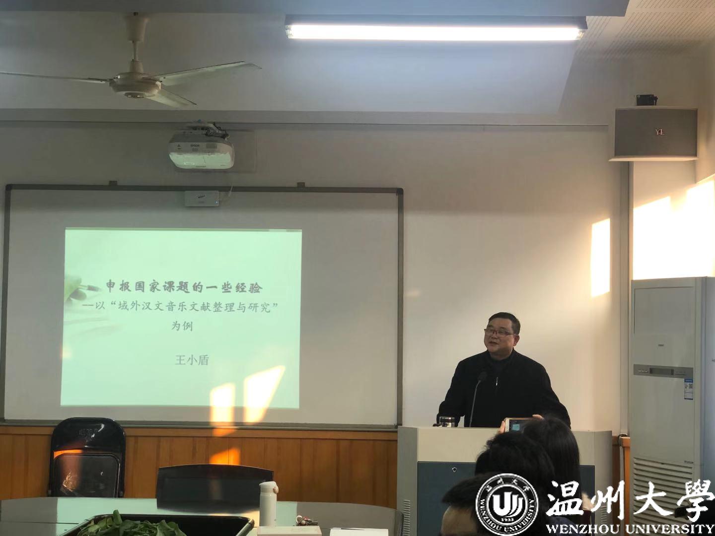 授聘仪式后,王小盾教授以“域外汉文音乐文献的整理与研究”这一课题为例,分享了他申报国家课题所积累的经验。王教授将此分为五个阶段,即缘起——准备——尝试——实施——成果。过程中,王教授介绍了学术研究所需的研究方法和视野,并展示了他在域内外搜集到的大量珍贵的一手资料。最后,他将以上经验凝练为三点,即选好研究方向、注意学术空白并给资料整理留予空间;积累前期成果,先考虑耕耘后考虑收获;尝试跨学科研究。相信在王小盾教授的带领之下,古天乐代言太阳集团138的科研工作必将取得更大进步。