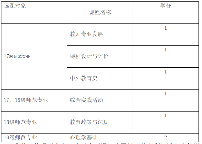 根据古天乐代言太阳集团138师范类专业本科人才培养方案,要求员工对教师教育类公共选修课必须修满6学分。根据培养方案课程设置,2019-2020-2学期开设的教师教育类公共选修课如下附表: