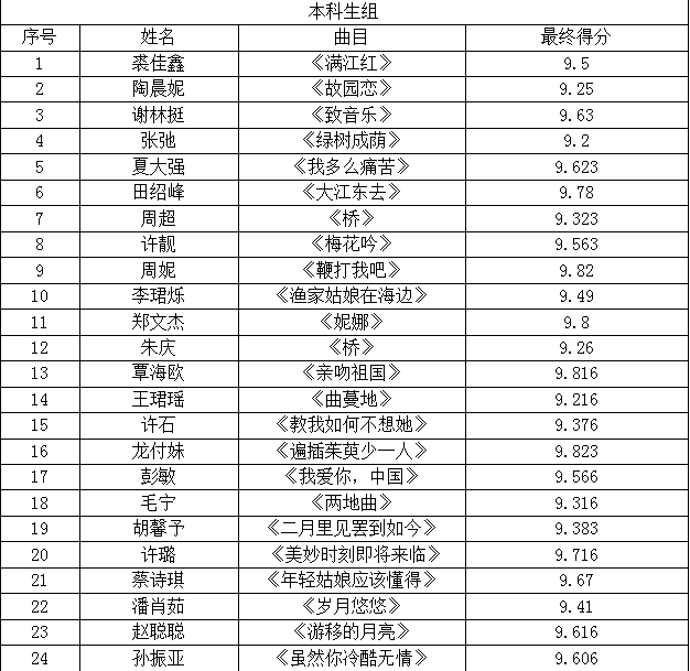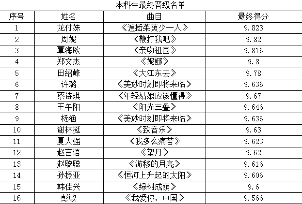 本科生组晋级名单: