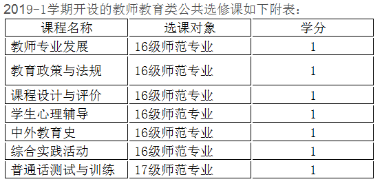 关于开展2018-2019-1学期师范专业教师教育类公共选修课选课的通知