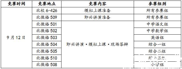 二、竞赛地点:北校区6-327、426、427,北校微格教室501-510。