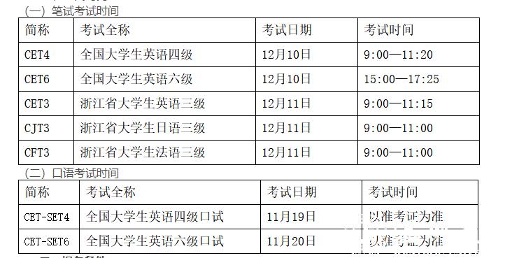 2022年12月浙江省大学外语三级考试和全国大学外语四、六级考试报名即将开始,现就考试报名有关事项通知如下: