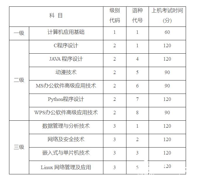 (六)三级:考试时间为120分钟。共有数据管理与分析技术、网络及安全技术、嵌入式与单片机技术、Linux网络管理及应用四个科目,题型均为判断题(10%)、单选题(60%)和综合应用题(30%)。