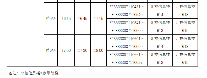 考试地点:北校信息楼(商公司楼)613、615室,候考室614、618室