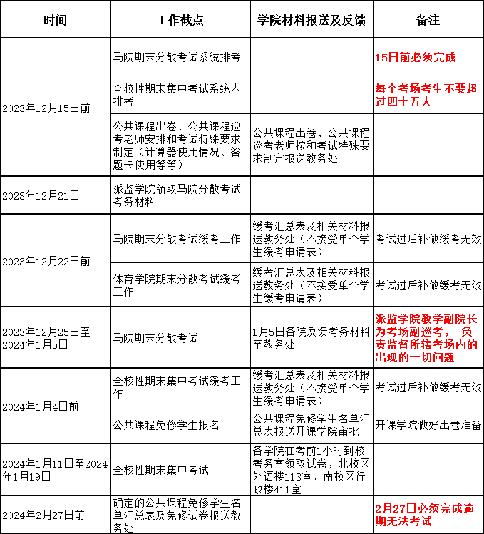 根据公司安排本学期教学时间到2024年1月19日结束,为做好本学期期末考试工作,现将有关事项通知如下:
