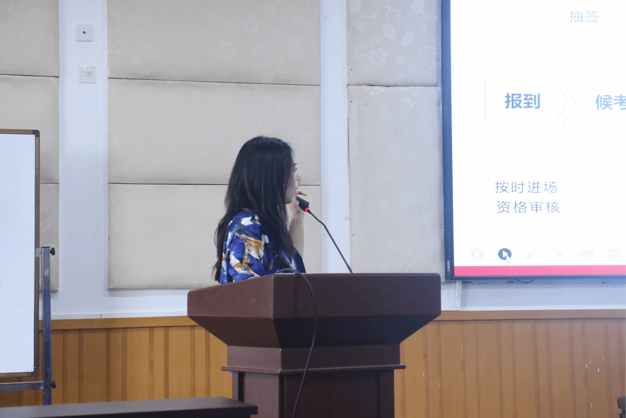 随后,张老师细致阐述了教团队格证考试的各项细节,包括报名的资格要求、涉及的考试科目、考试的结构以及评分的具体准则。她凭借丰富的教学经验,向同学们分享了实用的备考策略和技巧,这些建议涵盖了如何科学规划复习进度、精准把握考试关键点以及如何在面试环节中提升表现。她特别指出,试讲环节的时间控制在八分半钟左右为宜。同时,答辩环节的话题范围广泛,考生可能需要应对关于个人信息的提问,或是现场调整教学计划的挑战。